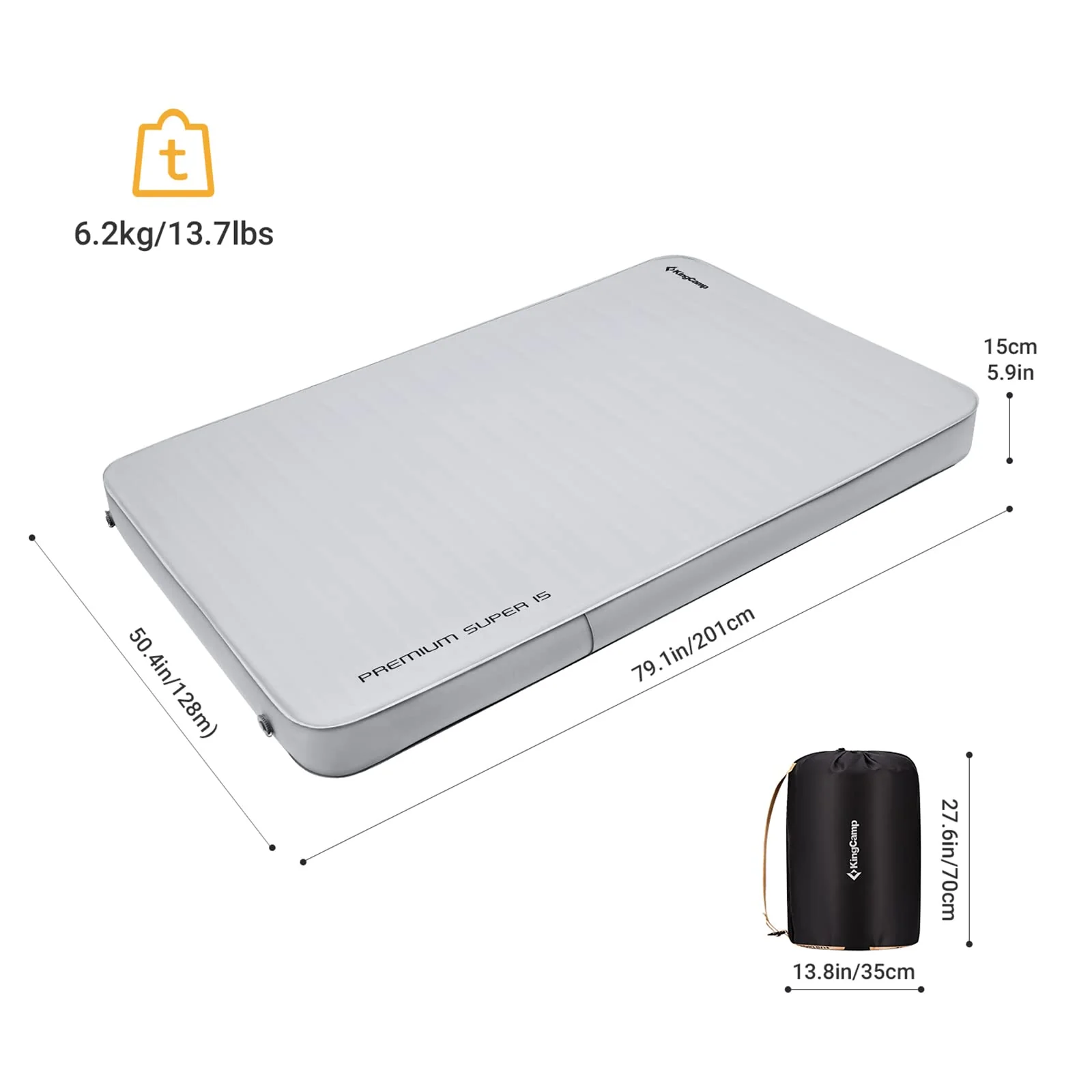 KingCamp PREMIUM SUPER 15 Self-Inflating Camping Sleeping Pad