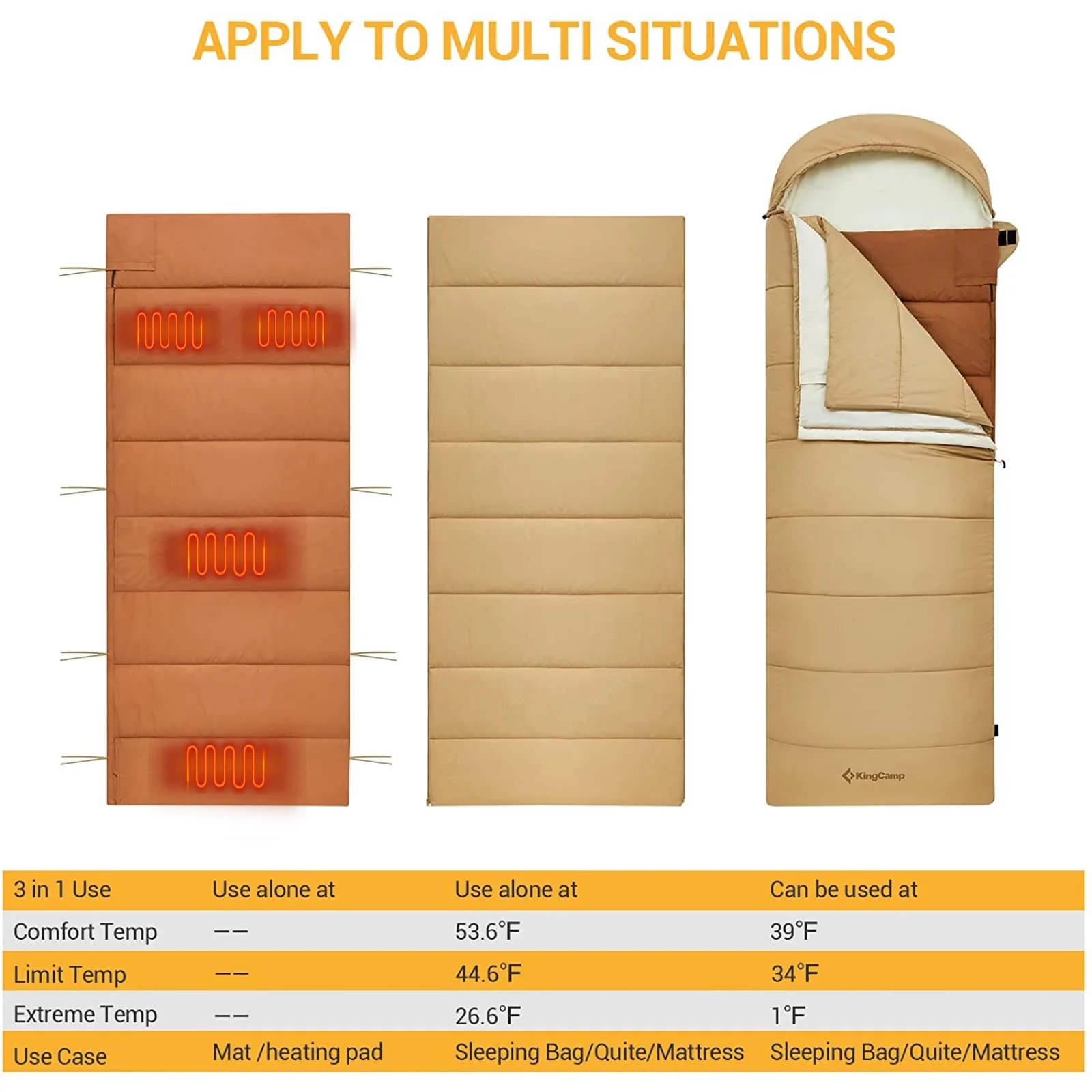 KingCamp Heated Sleeping Bag with 3 Temperature